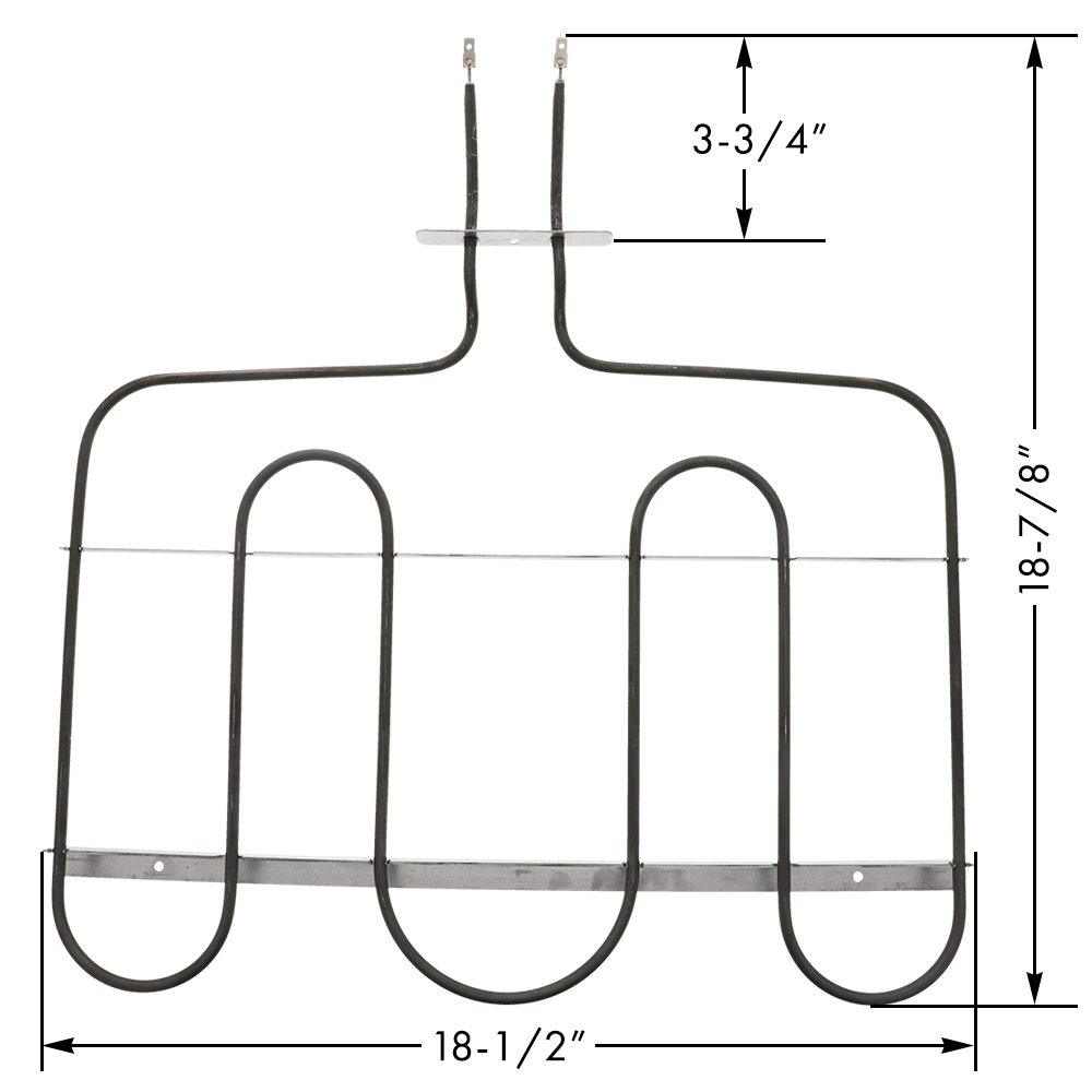 ERB1094 bake element is a calrod element designed to produce an even heat. 240 volts, 3600 watts with .250″ male terminal push-in connections. An exact match of the wattage is not necessary.
