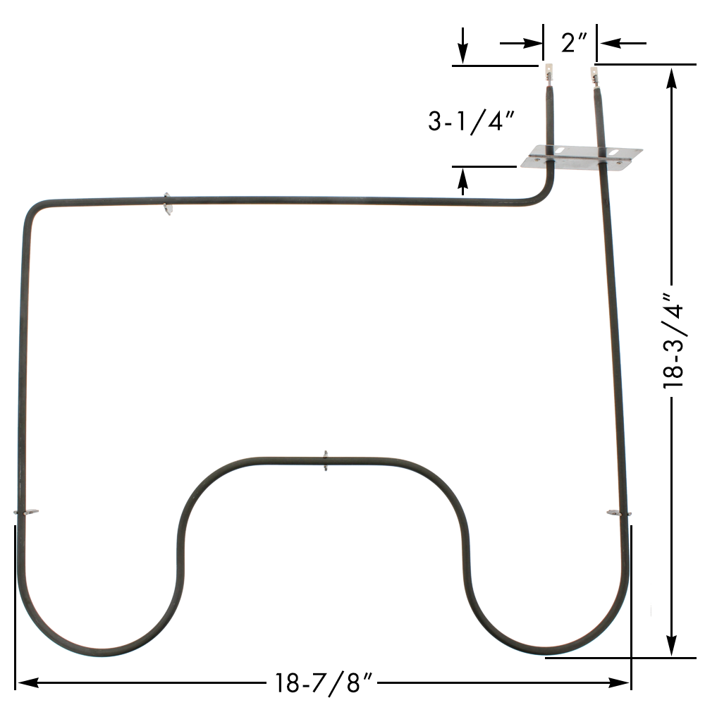 ERB4107 bake element is a calrod element designed to produce an even heat. 240/208 volts, 2585/1939 watts with .250″ male terminal push-in connections. An exact match of the wattage is not necessary.